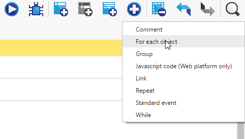 Para comenzar, haga clic en el botón + en la barra de herramientas del Editor de eventos: