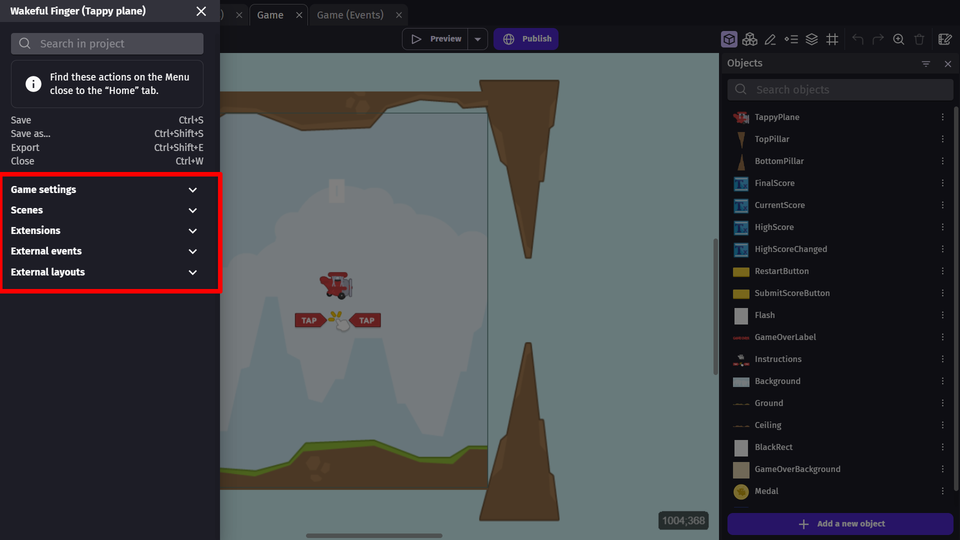 External layouts: Similar to external events, you can create an external layout for anything you want to use throughout your project(like UI and menu set ups), and then load them into any scene you choose. See External Layouts to learn how to use them.